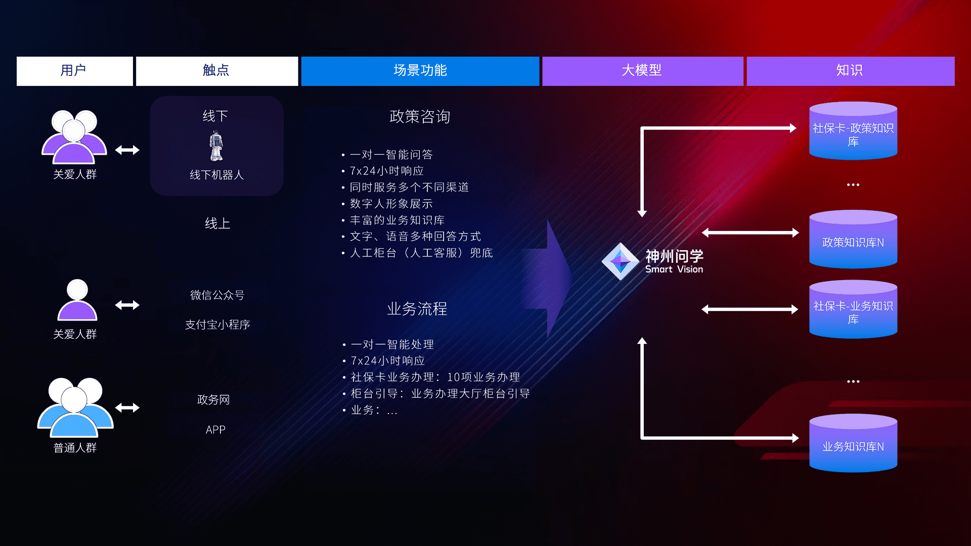 在服务大厅部署客服机器人,,,在线上应用和小程序配置客服数字人,,724小时为群众解答常规问题,,,,客服机器人无法处理的,,,转现场人工处理。。